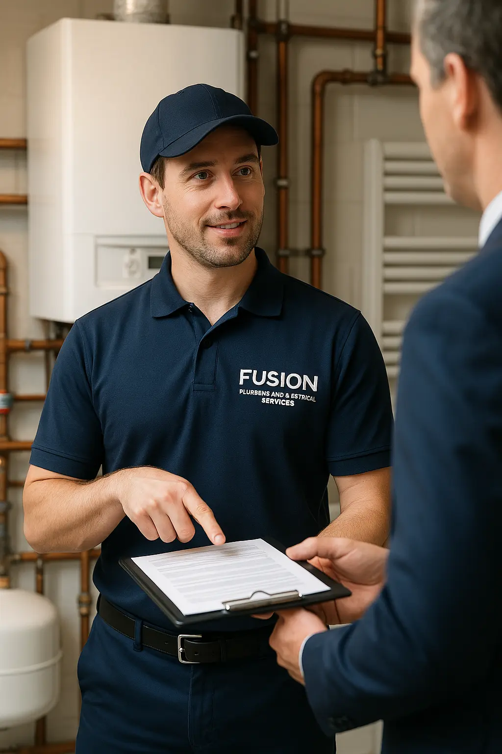Managing heating systems for your business in London can be complex, but choosing the right team makes all the difference. At Fusion Plumbing and Electrical, we specialize in delivering seamless commercial heating solutions that ensure comfort, compliance, and efficiency. With years of experience and a commitment to quality, we make the process stress-free and reliable.
